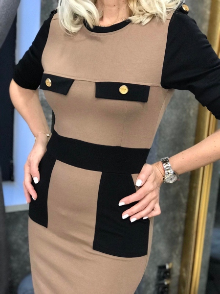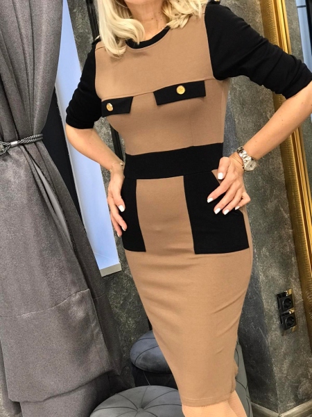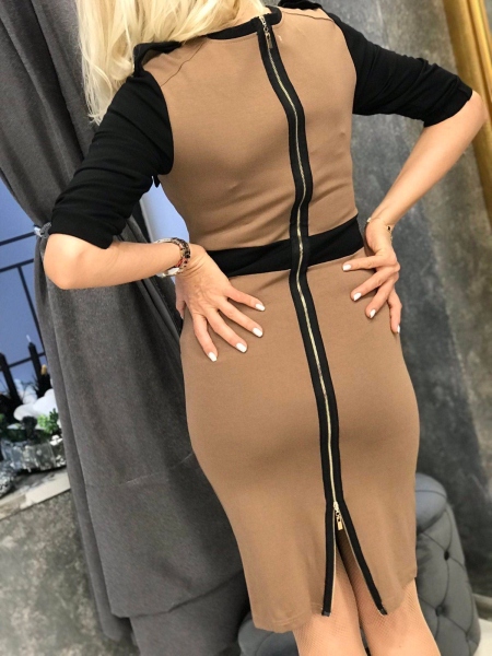 Рокля с втален силует със 7/8 ръкав. Моделът се закопчава с цип.