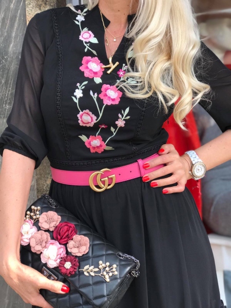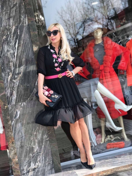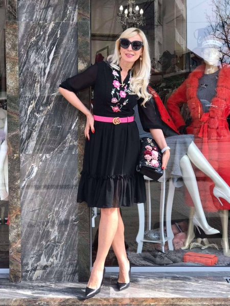 Черна рокля с бродирани цветя