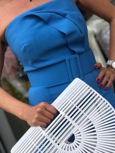 Гащеризон без презрамки тип бюстие.С цип на гърба и колан на талията.