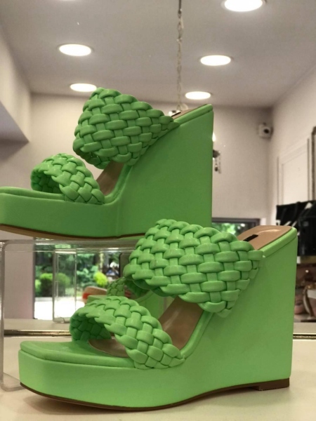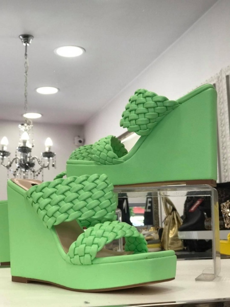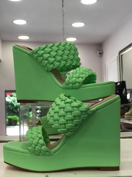 Чехли от еко кожа в светло зелен цвят.Модела е на платформа с височина 12 см.