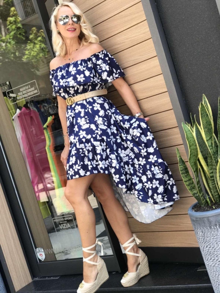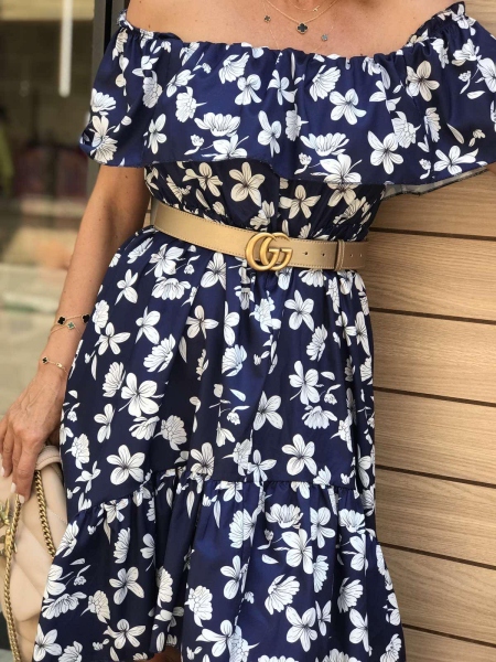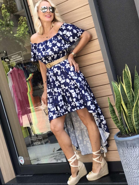 Рокля от фина материя с втален силует. Моделът е с ластик на талията и се облича без закопчаване. Размерът е универсален и е подходящ за S, M, L.