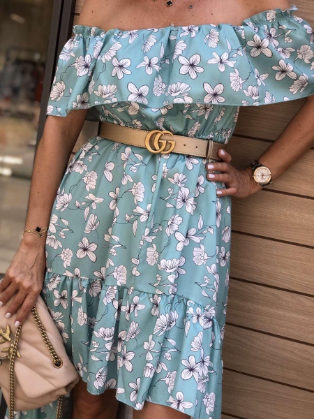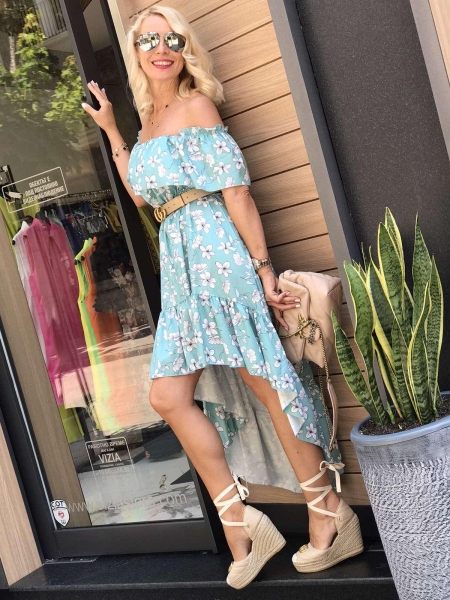 Рокля от фина материя с втален силует. Моделът е с ластик на талията и се облича без закопчаване. Размерът е универсален и е подходящ за S, M, L.