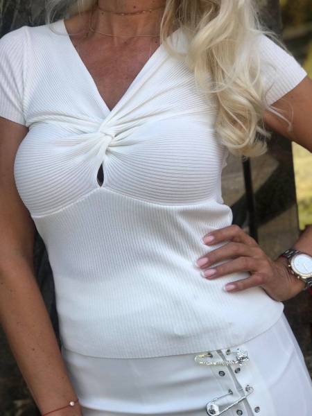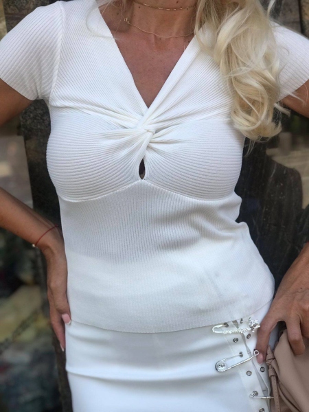 Блуза с втален силует с остро деколте и прехвърляне.Размера е универсален и е подходящ за S,M.