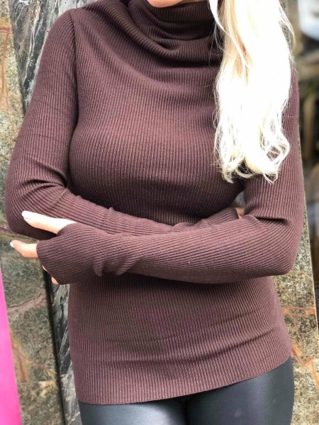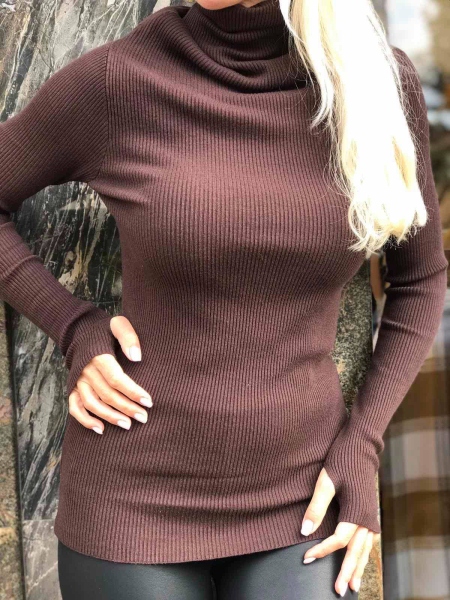 Поло в кафяв цвят с втален силует. Моделът е с дълъг ръкав и има в двата края на ръкавите отвор за палеца. Размерът е универсален и е подходящ за S,M,L.