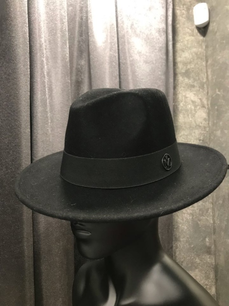 Шапка с перифеврия в черен цвят от вълна. Моделът има възможност за регулиране на размерът.