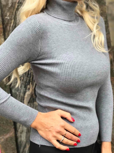 Поло от памучна материя в сив цвят. Моделът е по тялото с втален силует. Размерът е универсален и е подходящ за S,M.