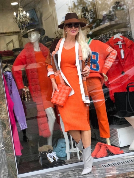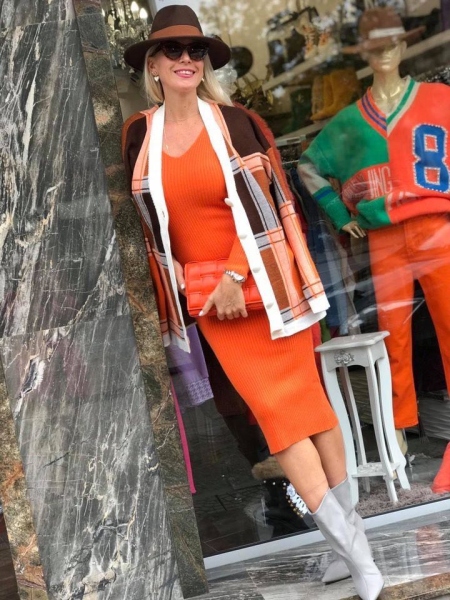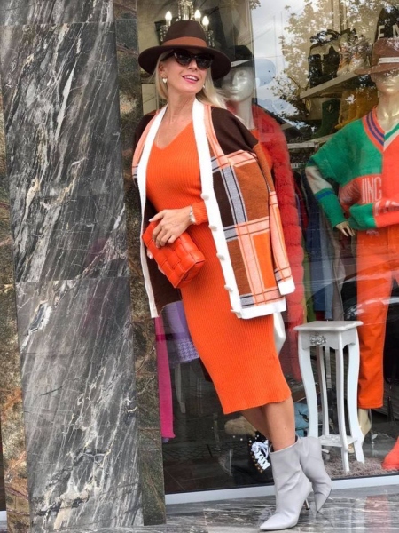 Комплект рокля с жилетка от фино плетиво. Роклята е с втален силует по тялото. Жилетката е със свободен силует и се закопчава с копчета.