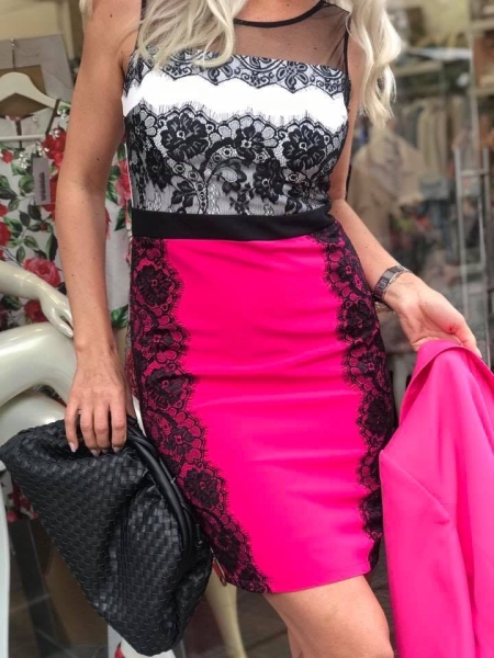 Рокля по тялото с дължина над коляното.Без ръкав с шев на талията и цип на гърба.