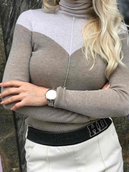 Поло от фино плетиво с втален силует. Моделът е универсален размер и е подходящ за S, M.