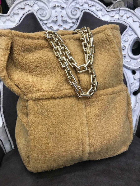 Чанта тип торба от естествена вълна. Моделът е без закопчаване. Към нея има и несесер.