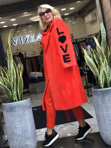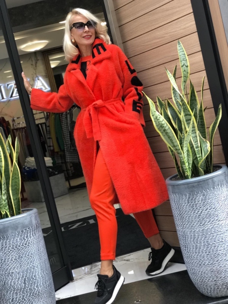 Палто в оранжево с надписи