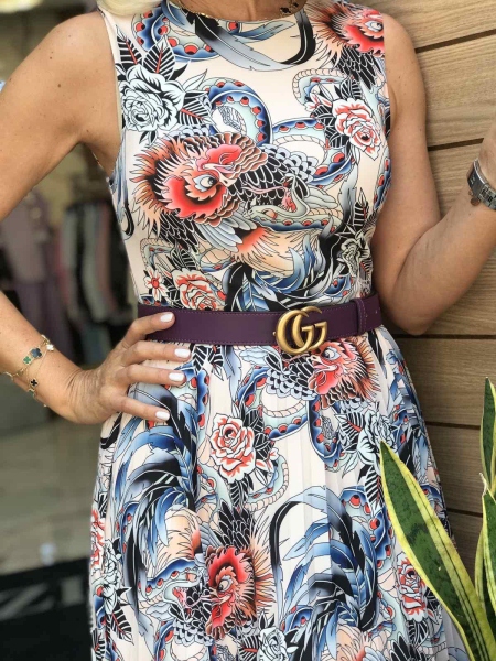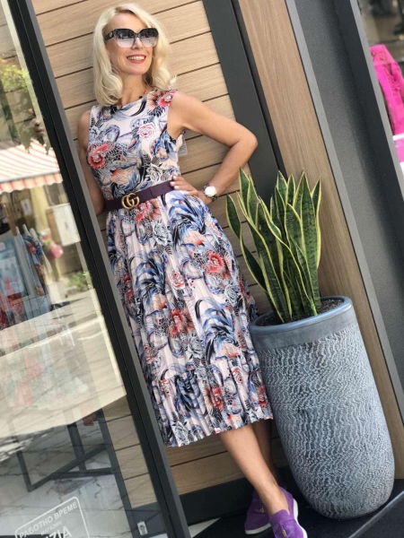 Рокля с цветни мотиви със солей пола