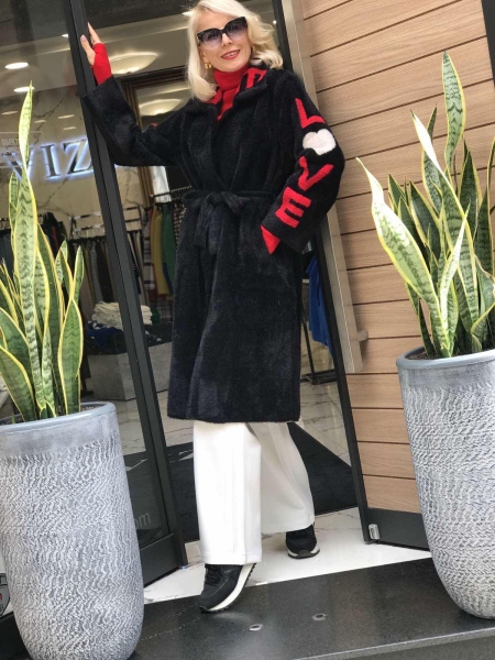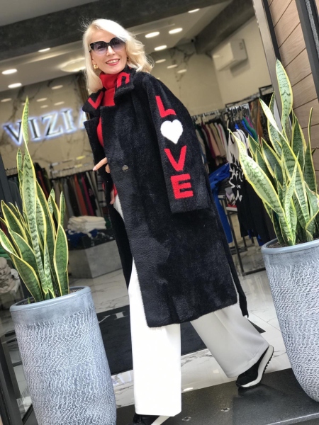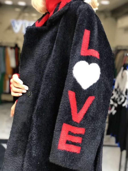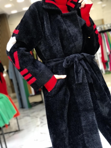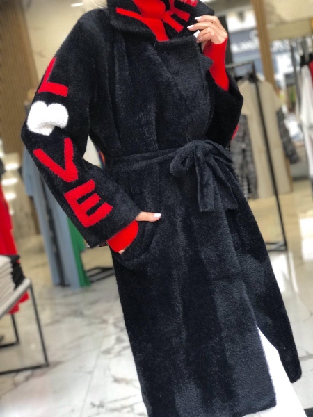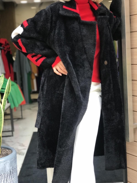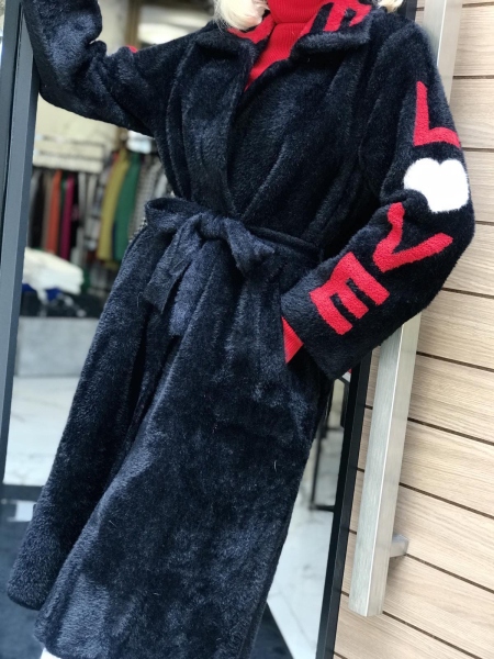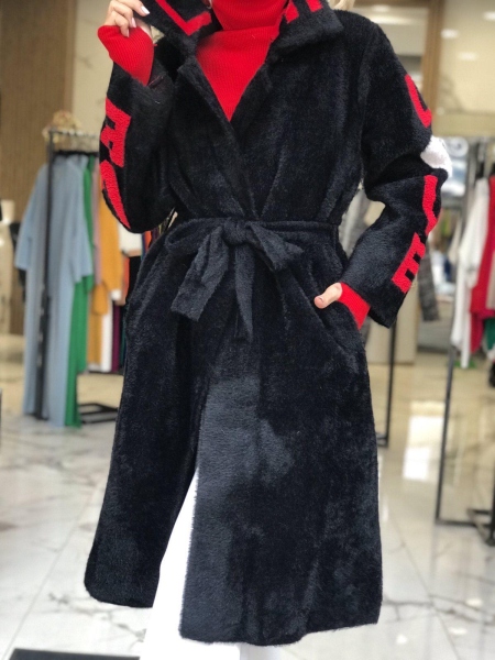 Палто от мека и топла материя в черен цвят. Моделът се закопчава с копче и има колан на талията. Размерът е универсален.