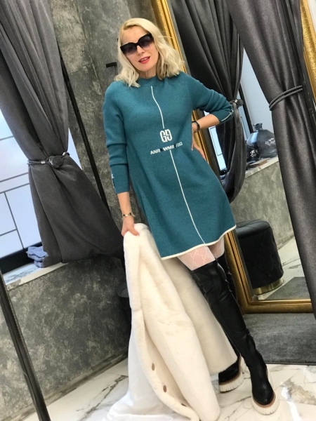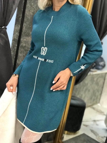 Рокля от мека и плътна материя в петролено зелен цвят. Моделът е с прав силует без закопчаване. Размерът е универсален и е подходящ за S, M.
