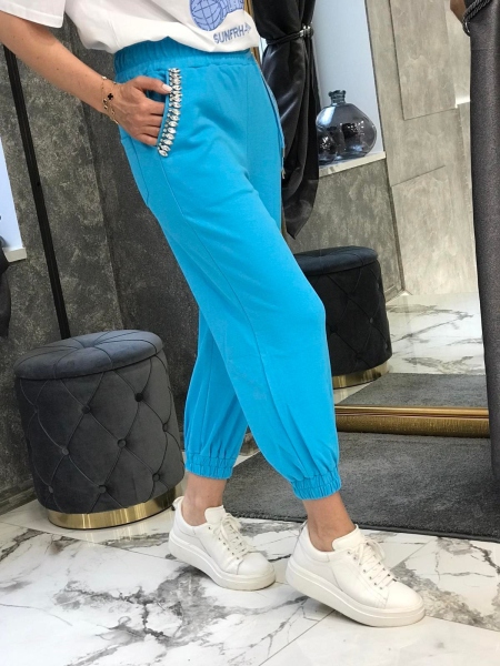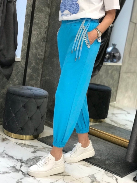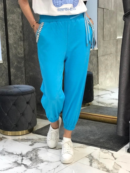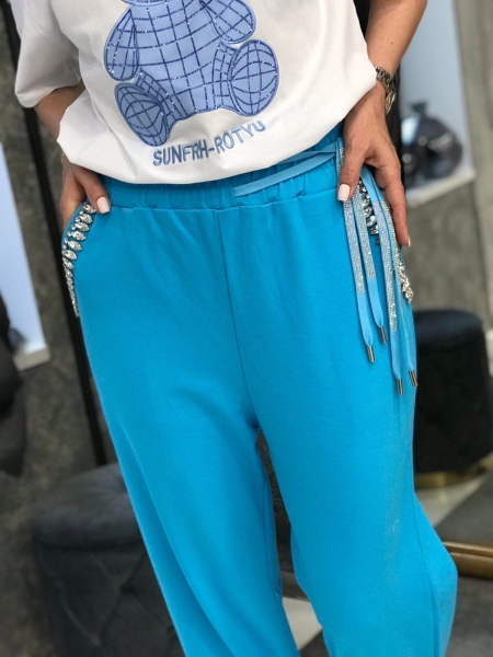 Панталон в синьо с камъни