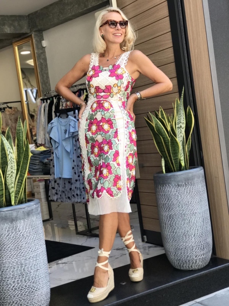 Рокля с апликирани цветя