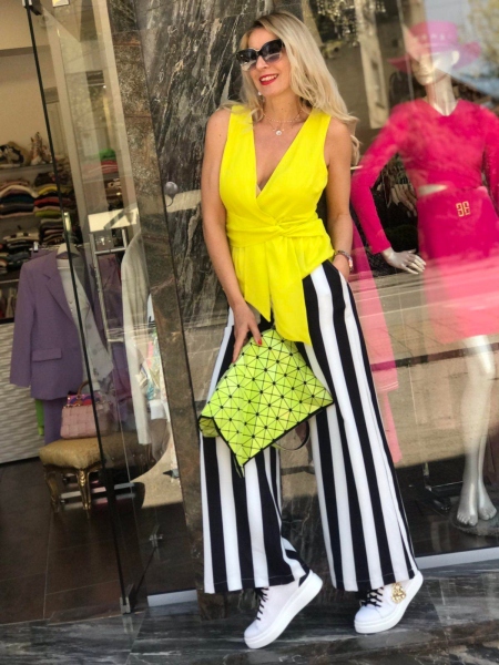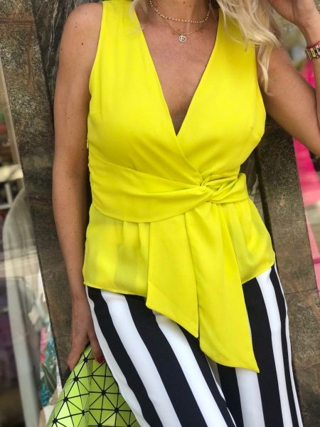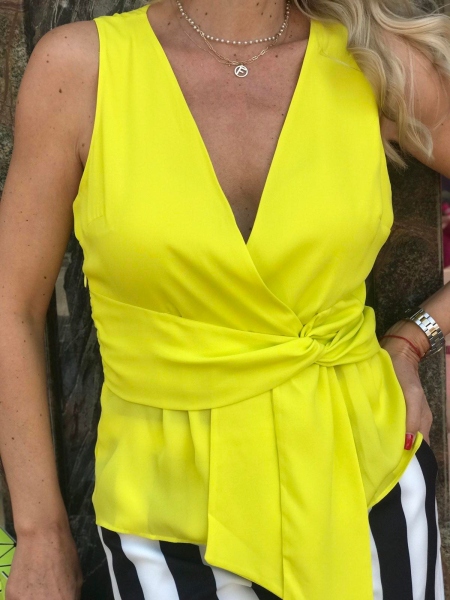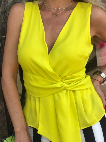Топ от тънка шифонена материя в неоново зелен цвят. Моделът е с втален силует и се закопчава с цип.