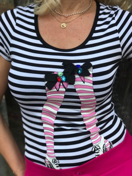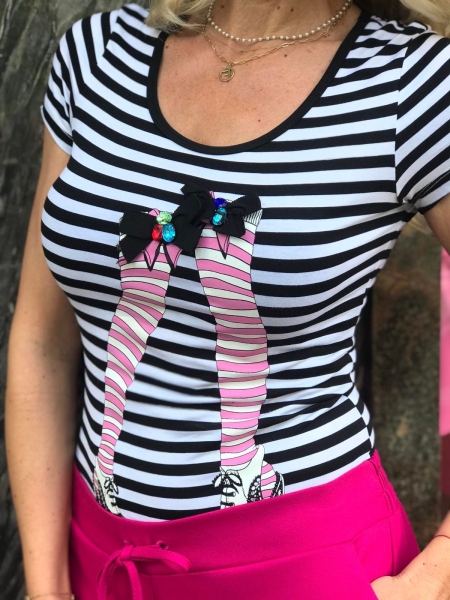 Блуза с къс ръкав в черно и бяло. Моделът е с втален силует.