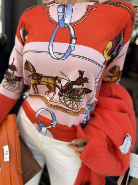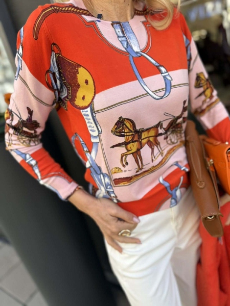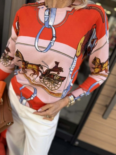Блуза от фино плетиво с цветен десен. Моделът е със свободен силует. Размерът е универсален.