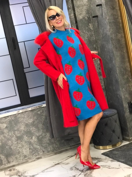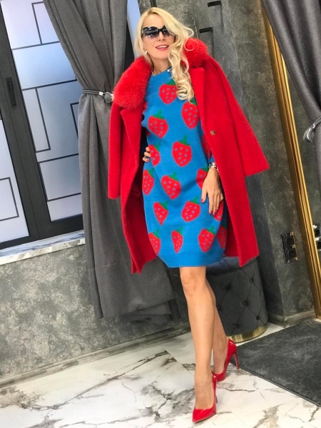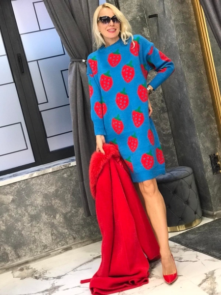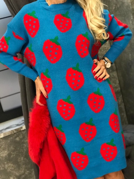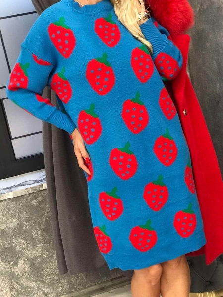 Рокля от фино плетиво в син цвят. Моделът е със свободен силует без закопчаване. Размерът е универсален и е подходящ за M, L.