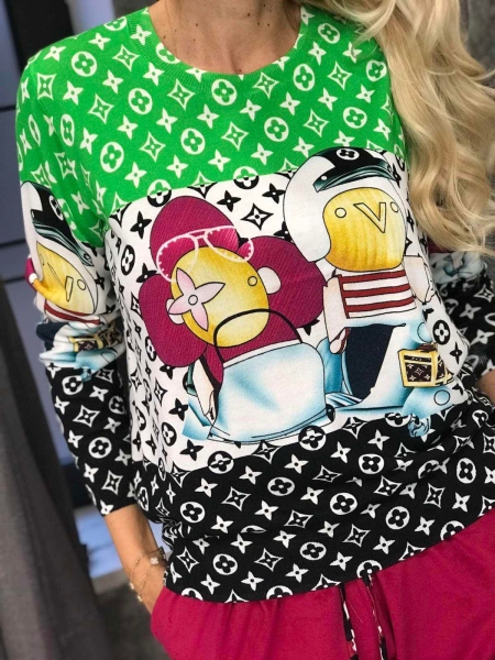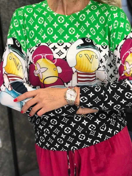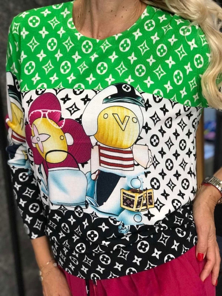 Блуза от фино плетиво с цветен десен. Моделът е със свободен силует. Размерът е универсален.