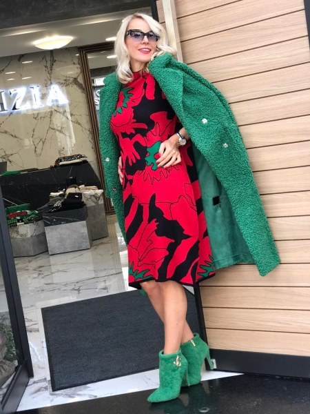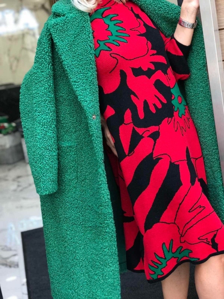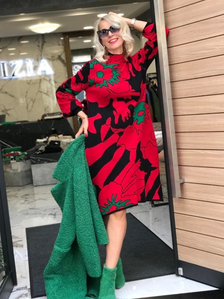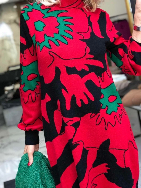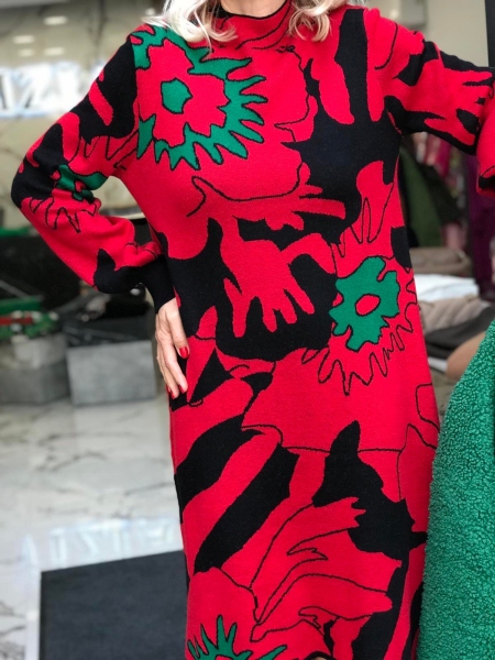 Рокля от мека и топла материя с цветен десен. Моделът е със свободен силует. Размерът е универсален и е подходящ заS, M, L.