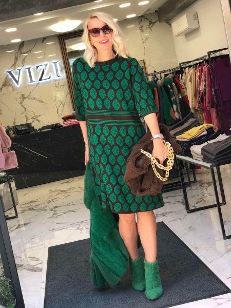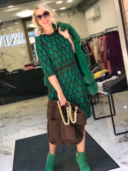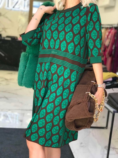 Рокля от мека и топла материя с цветен десен. Моделът е със свободен силует. Размерът е универсален и е подходящ за M, L, XL.