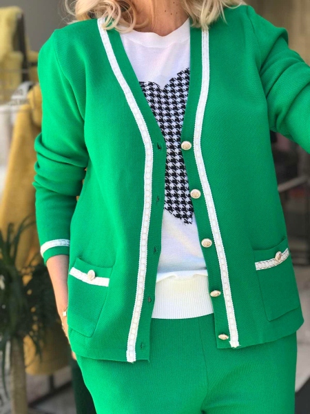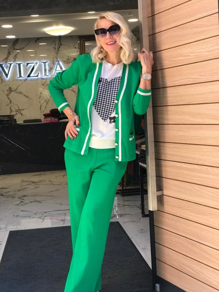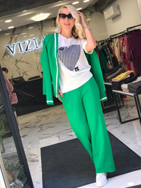 Комплект с жилетка в зелен цвят