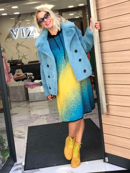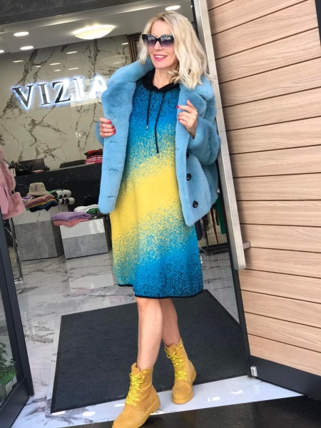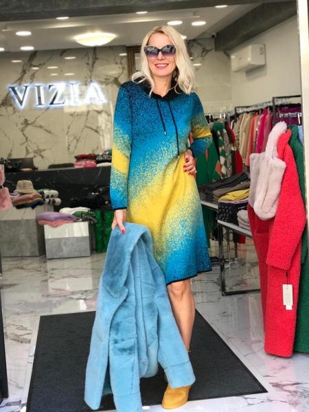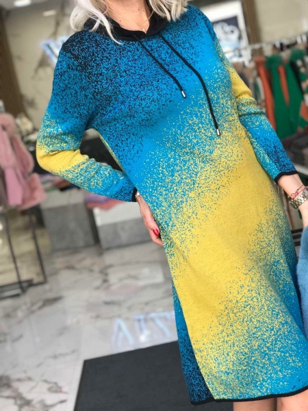 Рокля от фино плетиво с качулка. Моделът е със свободен силует. Размерът е универсален и е подходящ за M, L.