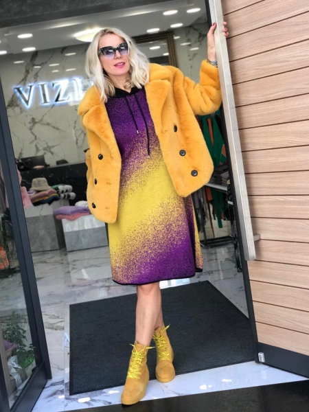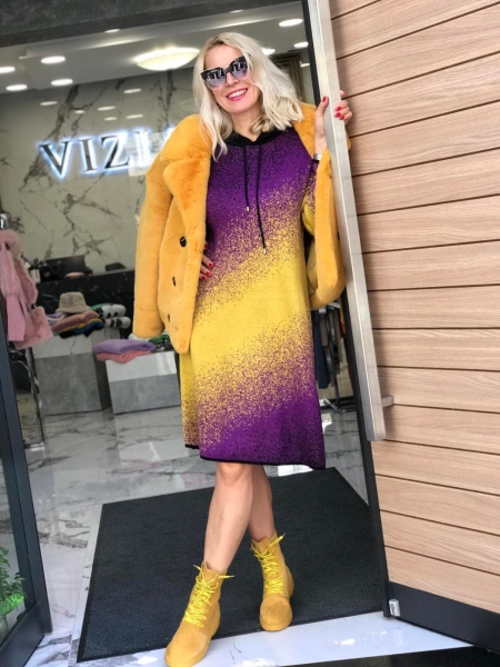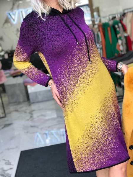 Рокля от фино плетиво с качулка. Моделът е със свободен силует. Размерът е универсален и е подходящ за M, L.