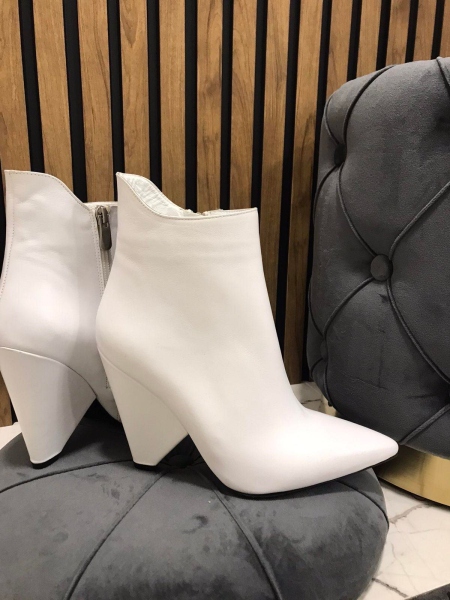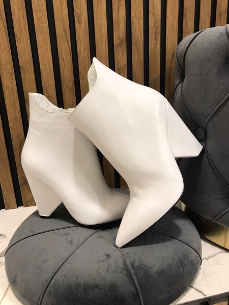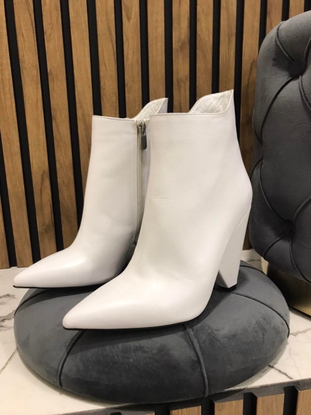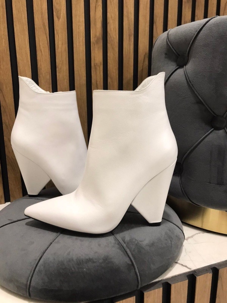 Боти в бял цвят от естествена кожа. Моделът е със заострен връх.