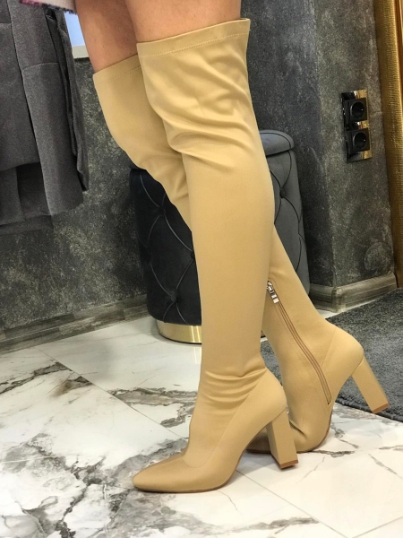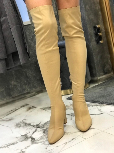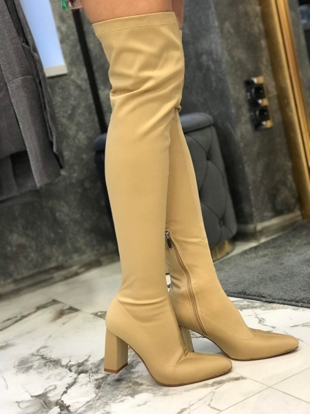 Чизми от текстил в бежов цвят. Моделът има страничен цип.