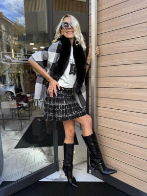 Пончо- шал от мека материя. Моделът е декориран по яката с еко пух. Размерът е универсдален.