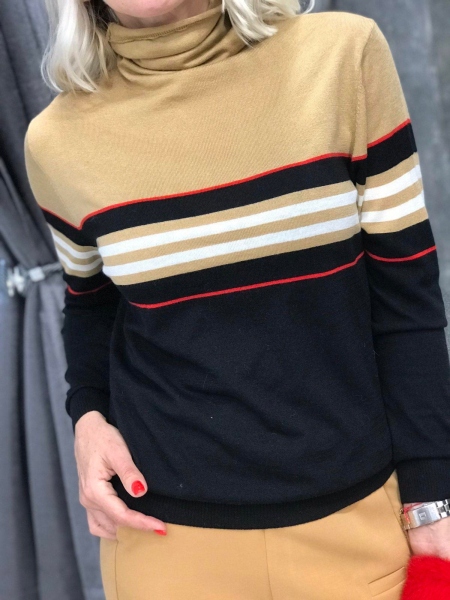 Цветно поло- блуза от плътна материя. Моделът е със свободен силует. Размерът е универсален и е подходящ за S, M, L.