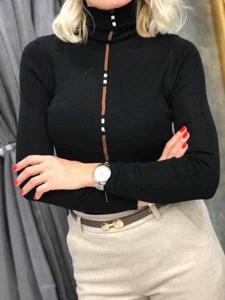 Поло от фино плетиво в черен цвят. Моделът е с втален силует. Размерът е универсален и е подходящ за S/M.