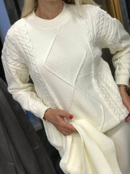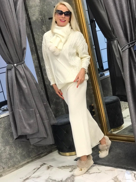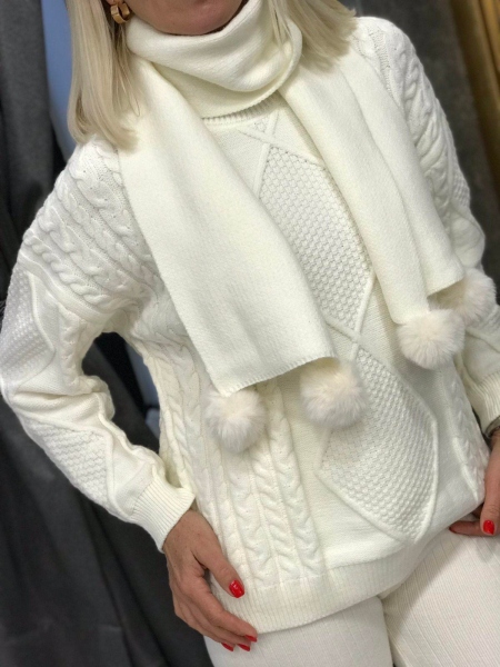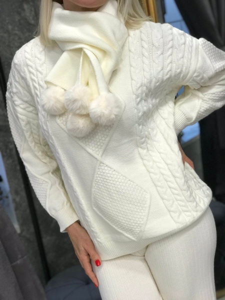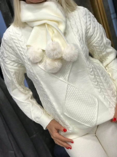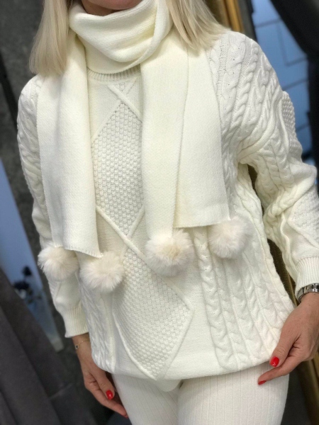 Комплект пуловер с шал в бяло