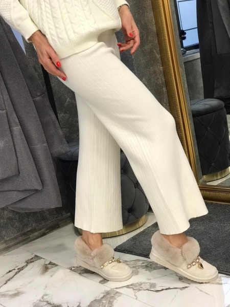 Рипсен панталон от кашмирено плетиво в екрю