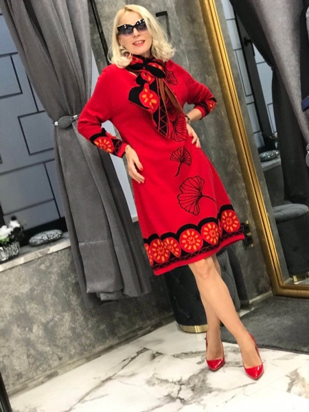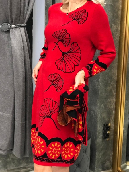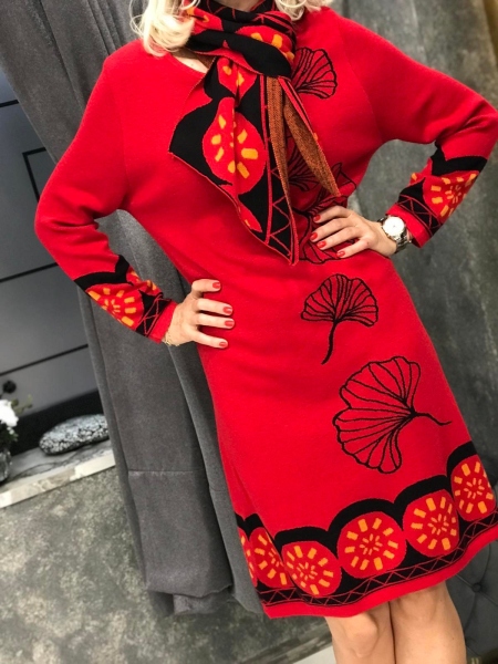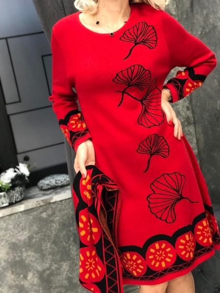 Рокля от фино плетиво с цветен десен. Моделът е със свободен силует. Размерът е универсален и е подходящ за S, M, L.