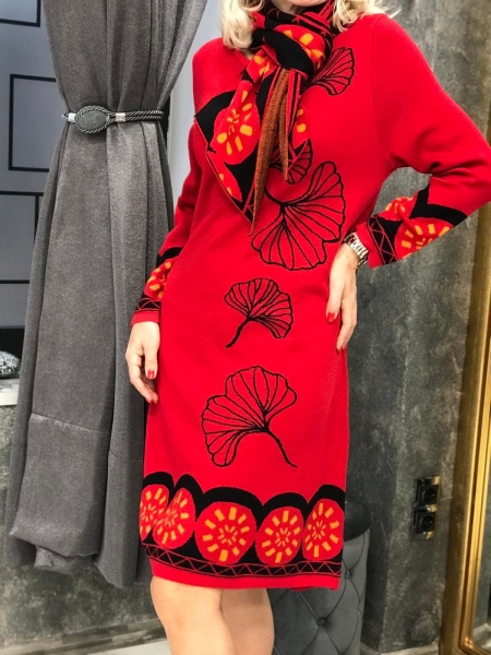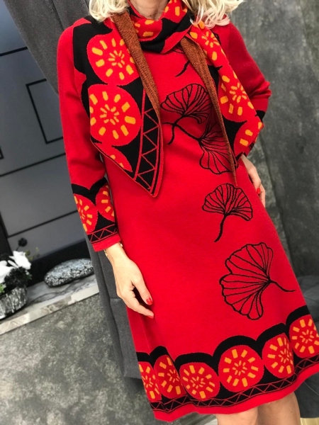 Цветна рокля с шал 4