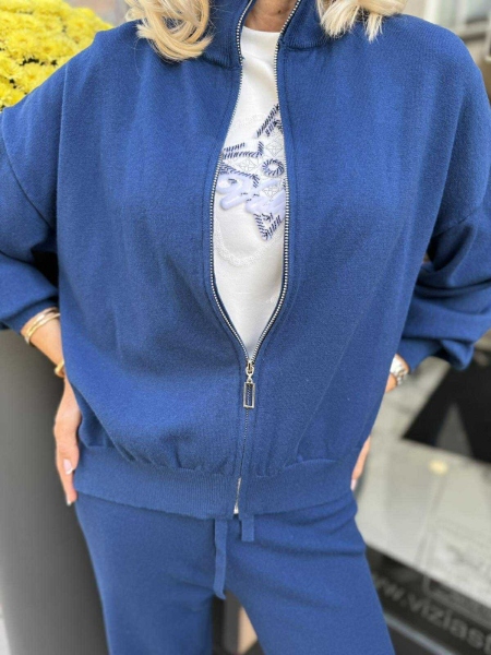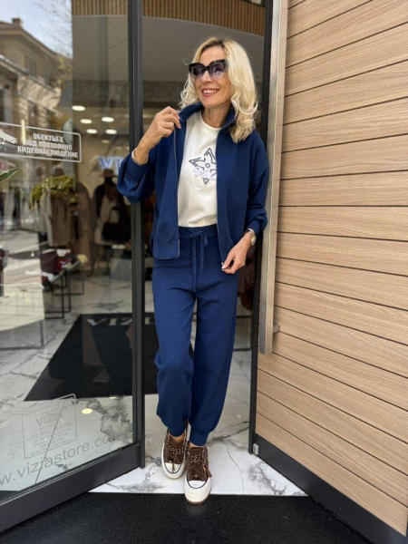 Ежедневен комплект от мека кашмирена материя. Горна част е тип яке със свободен силует. Панталонът е с ластик в талията и краищата на крачолите. Размерът е универсален и е подходящ за S, M, L.