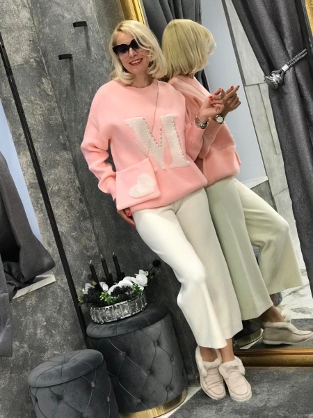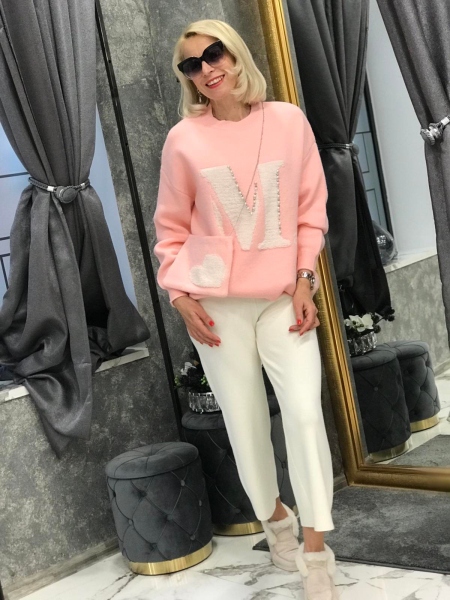 Плътен пуловер плетиво със свободен силует. Моделът е универсален размер и е подходящ за S, M, L.