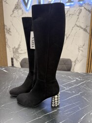 Чизми от естесвена кожа с дебела бяла подметка. Моделът има странични ципове за по- лесно обуване.