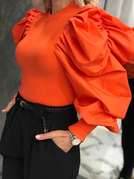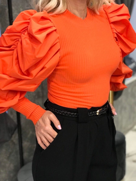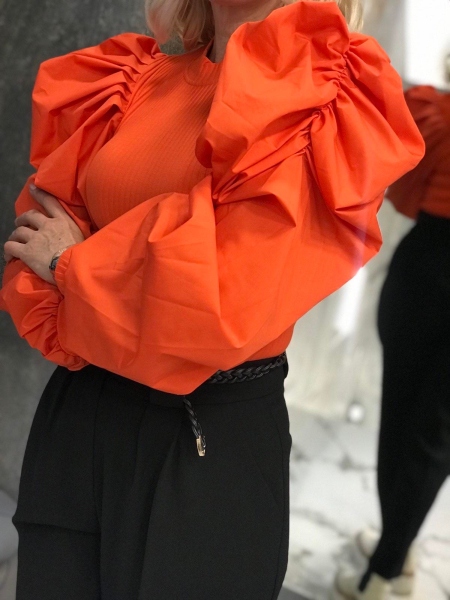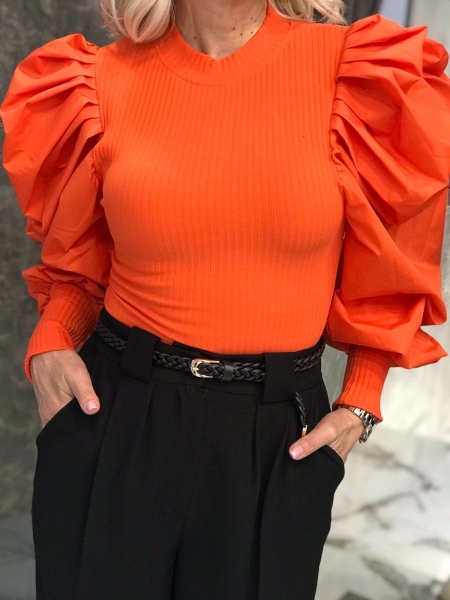 Блуза в оранжев цвят с буфан ръкав