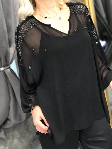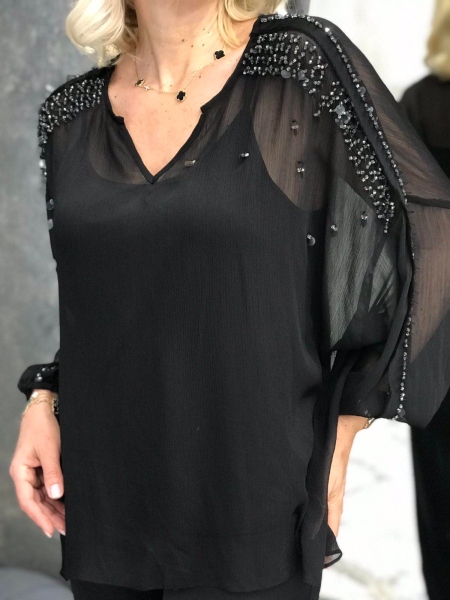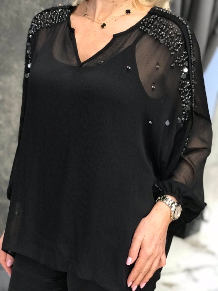 Блуза от фина материя със свободен силует. Към нея има и топ.