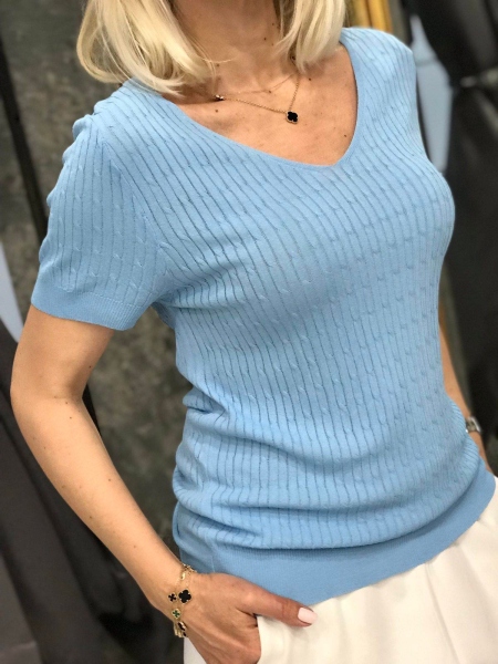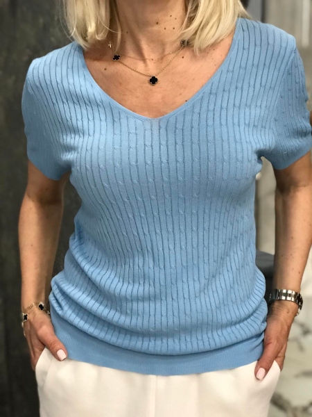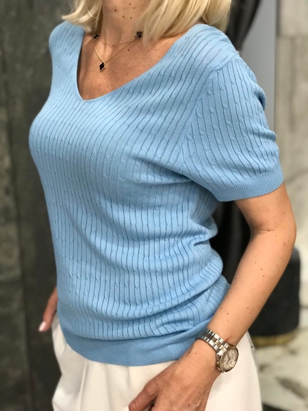 Блуза от фино плетов със свободен силует. Моделът е универсален размер и е подходящ за M, L.