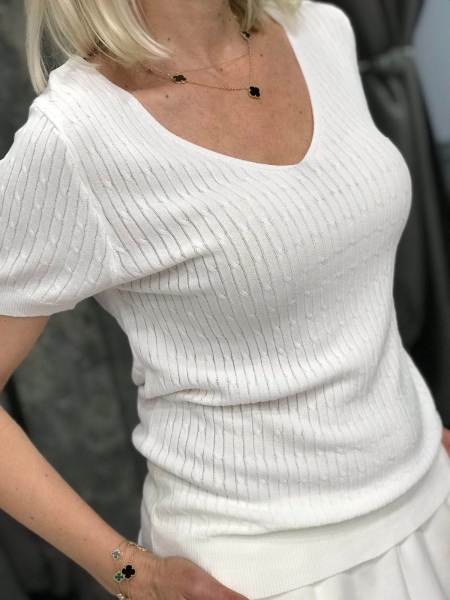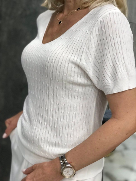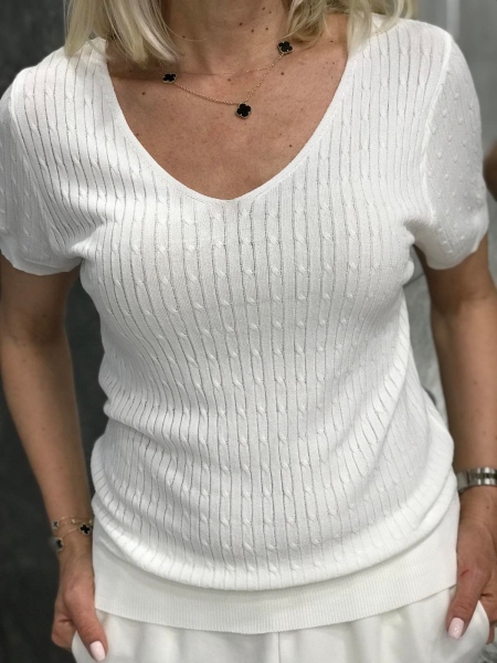 Блуза от фино плетов със свободен силует. Моделът е универсален размер и е подходящ за M, L.
