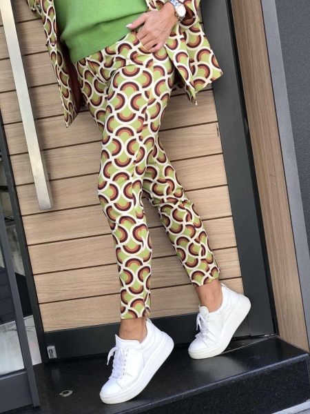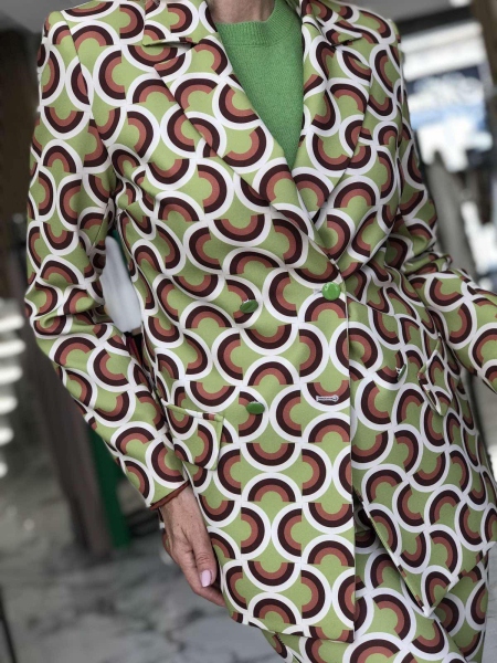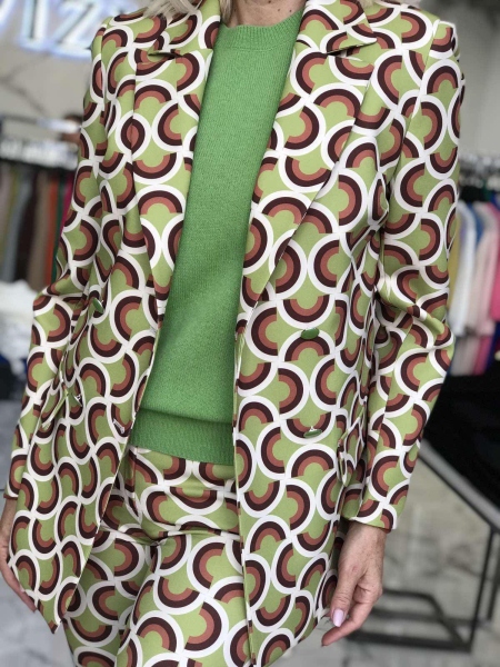 Костюм с геометричен десен в зелено