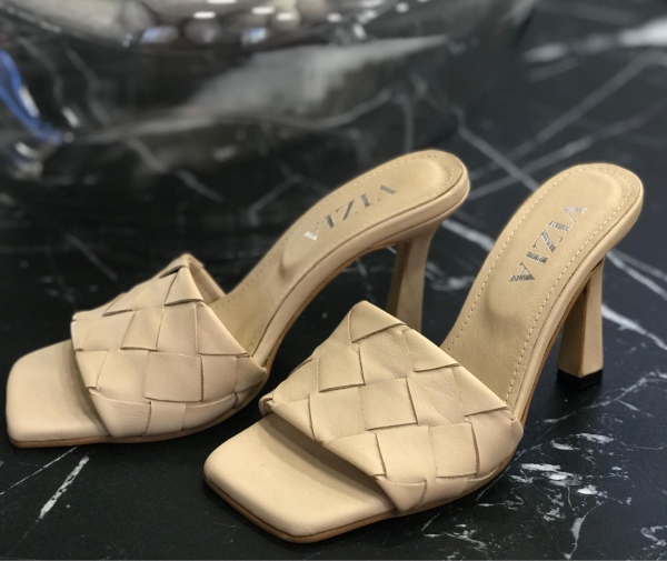 Чехли от естествена кожа в бежов цвят.Височина на тока 10 см.
