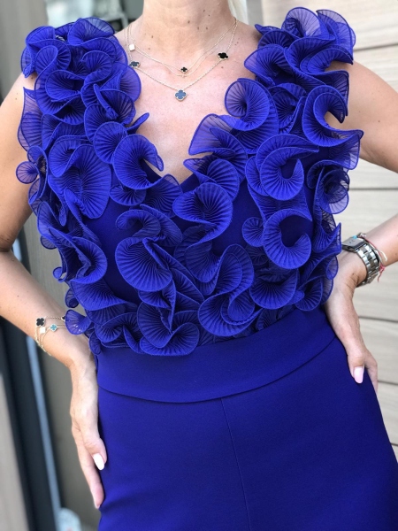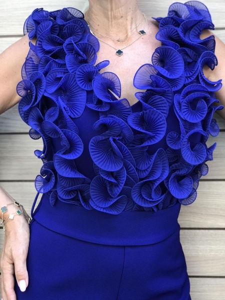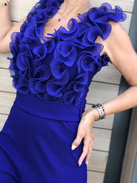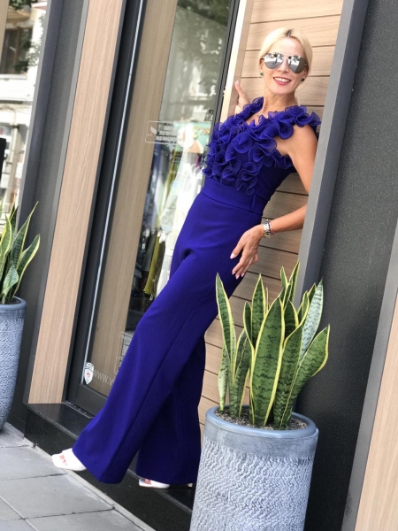 Гащеризон с втален силует и широки крачоли. Моделът се закопчава с цип.