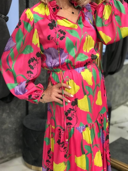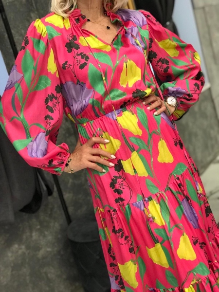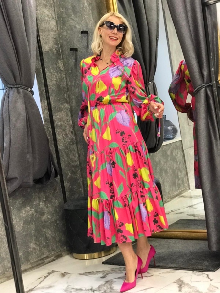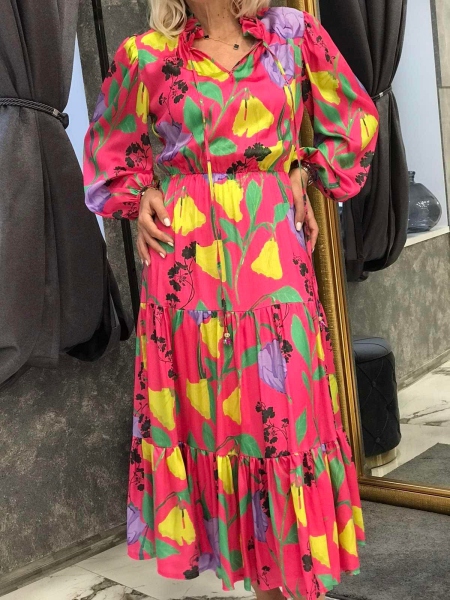Пъстра рокля от сатенирана материя